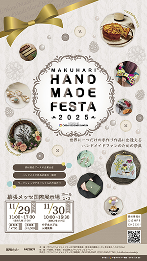 ■『マクハリハンドメイドフェスタ2025』 幕張メッセ国際展示場 ホール1・2 ブースNo.う15 2025年11月29日(土)・30日(日) 29日 11:00〜17:30 30日 10:00〜16:30