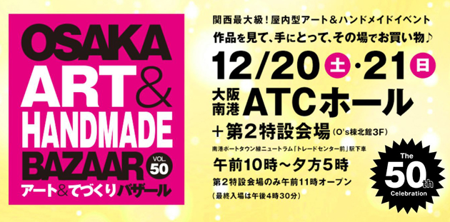■『OSAKAアート&てづくりバザール VOL.50』 大阪南港 ATCホール 2025年12月20日(土)・21(日)10:00〜17:00