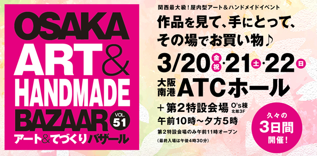 ■『OSAKAアート&てづくりバザール VOL.51』 大阪南港 ATCホール 2026年3月20日(金・祝)・21日(土)・22日(日)10:00〜17:00
